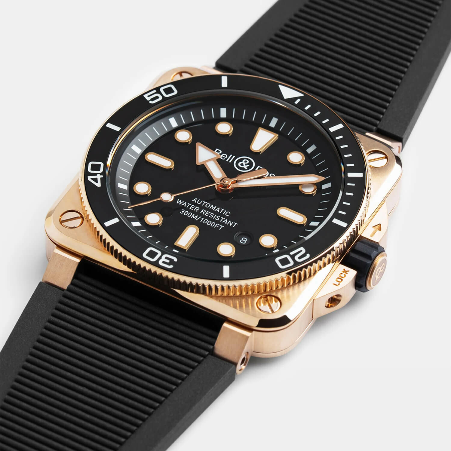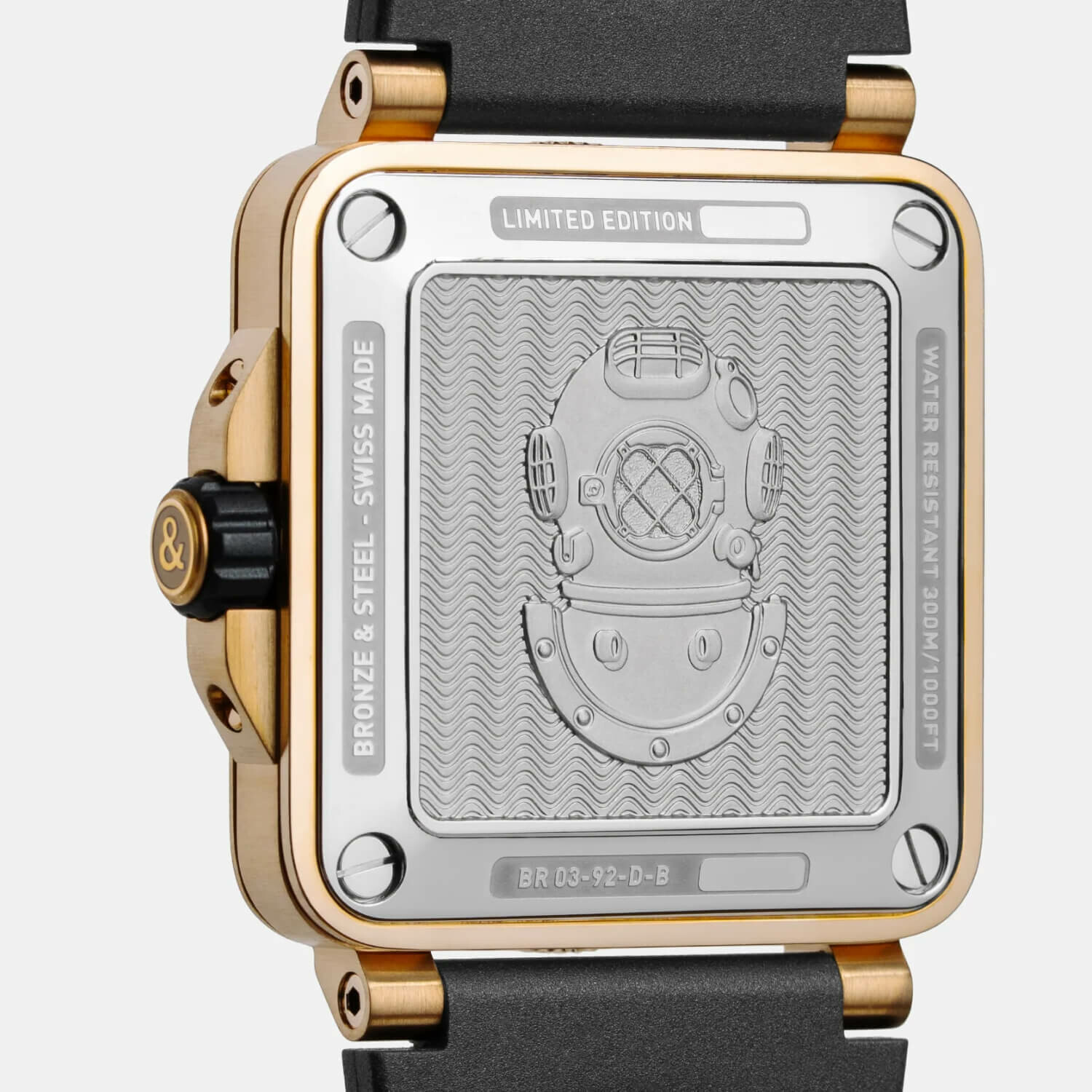 Le boîtier de 42 mm est façonné dans un alliage de bronze (92 % de cuivre et 8 % d'étain) utilisé autrefois pour les casques de scaphandriers et la construction navale. Sa finition satinée-polie offre un éclat chaleureux qui contraste magnifiquement avec la lunette tournante unidirectionnelle graduée en aluminium anodisé noir. Ce matériau "vivant" réagit à son environnement, s'oxydant de manière imprévisible pour offrir un aspect vintage authentique. Fidèle aux exigences de la norme ISO 6425, elle est parfaitement étanche à 300 mètres.