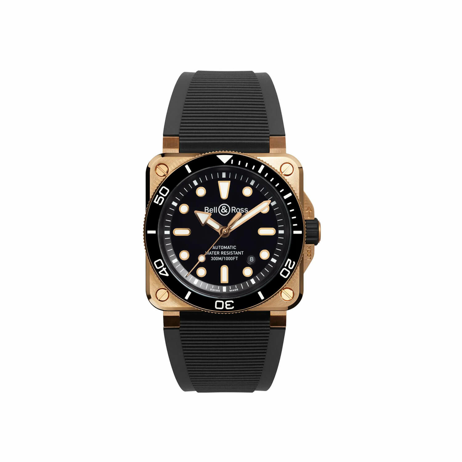 Le cadran noir mat sert d'écrin à des index appliqués et des aiguilles dorés rose, créant une esthétique luxueuse et technique. Pour garantir une sécurité maximale lors des explorations sous-marines, ces éléments sont généreusement revêtus de Super-LumiNova® blanc à émission verte, assurant une lecture parfaite dans l'obscurité totale. Le verre saphir ultra-épais avec traitement antireflet couronne cet ensemble conçu pour résister aux pressions les plus extrêmes tout en conservant une élégance rare en milieu urbain.